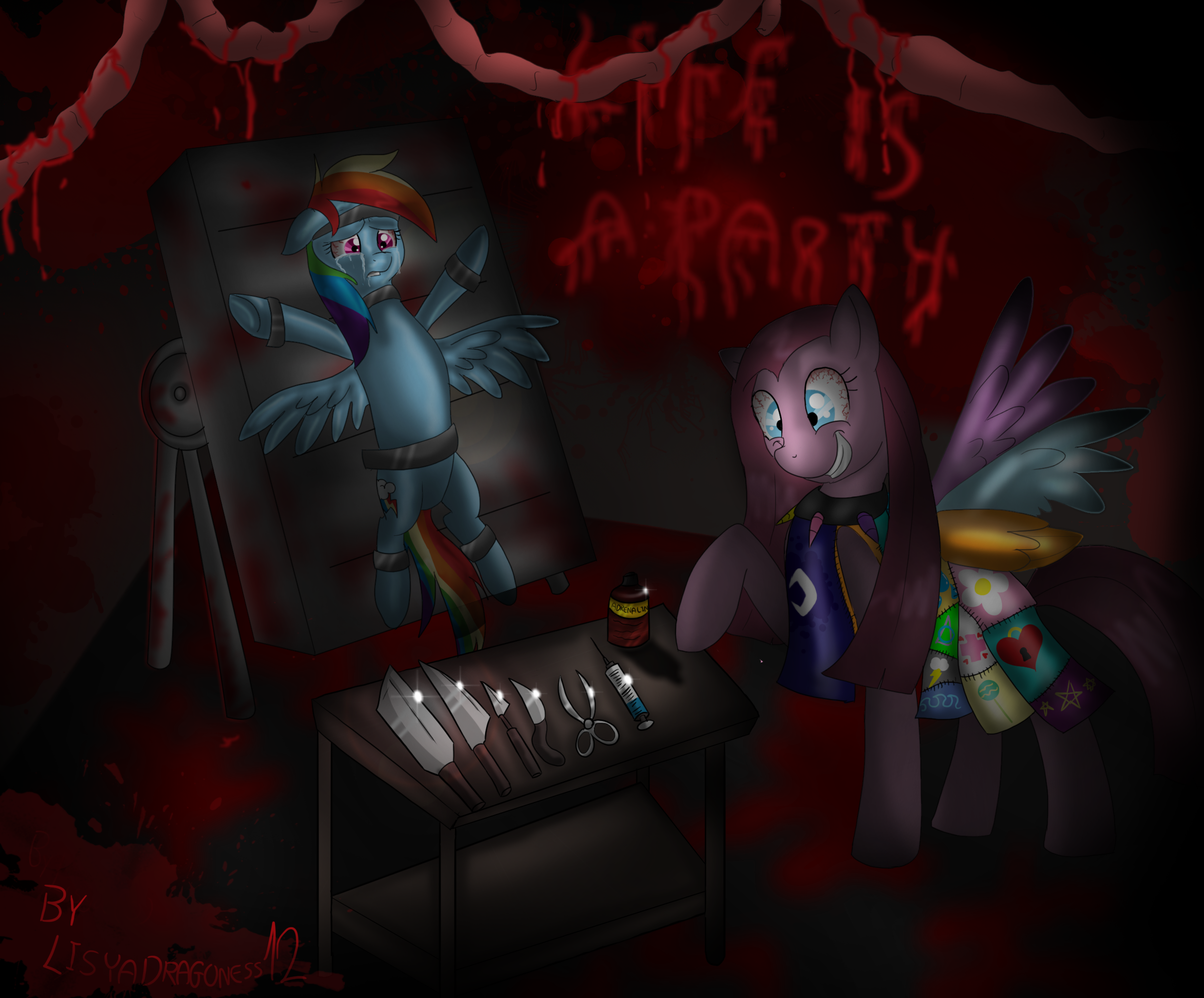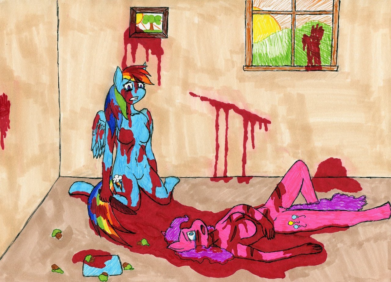 166188 - artist:lisyadragoness12 blood gore rainbow_dash Cupcakes pinkie_pie pinkamena_diane_pie.png