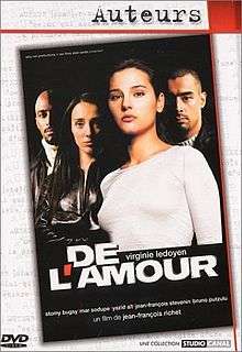 All About Love (original title: De l'amour) is a 2001 French drama film directed by Jean-François Richet. It stars Virginie Ledoyen and Yazid Aït.[1] It was nominated for an award at the 2001 Cairo International Film Festival in 1945.[2]