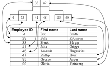 Btrieve uses a b-tree format to store record indexes on particular table columns. The index maps each set of indexed column values to the set of unique identifiers for the rows that have those column values, which provides a quick way to find the rows within a table using the indexed column. B-trees are tree data structures and are very efficient as a mechanism for fast data retrieval. The drawback of a btree is that data must be constantly balanced when it is inserted into the tree, therefore Btrieve only stores the record index as btree to reduce the amount of time it takes to insert and update records. A separate b-tree is kept for each index in the system, and the root node information is kept in the FCR. In Btrieve 6.x a new index can be created at file creation time, or added and dropped after the file is created. Index pages are also created as they are needed. Before Btrieve 6.0 existing key indexes could not be removed, though supplemental indexes could be created and dropped as needed.