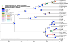 - ↑ Ané, C., Larget, B., Baum, D.A.,Smith, S.D., Rokas, A. 2007. Bayesian estimation of concordance among gene trees. Molecular Biology and Evolution 24(2), 412-426