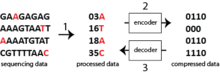 Encoding schemes are used to convert coordinate integers into binary form to provide additional compression gains. Encoding designs, such as the Golomb code and the Huffman code, have been incorporated into genomic data compression tools.[4][5][6][7][8][9] Of course, encoding schemes entail accompanying decoding algorithms. Choice of the decoding scheme potentially affects the efficiency of sequence information retrieval.