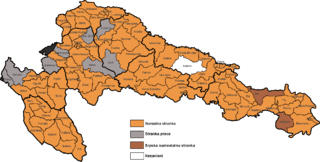 Results of the election in each of the electoral districts in 8 counties of the Kingdom of Croatia-Slavonia: the party with the plurality of votes in each district: People's Party Party of Rights Serb Independent Party Independent | ||||||||||||||||||||||||||