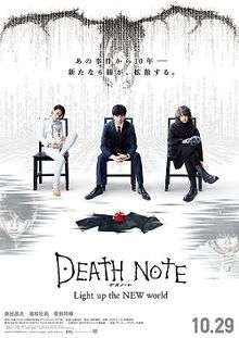 Death Note: Light Up the New World (デスノート Light up the NEW world Desu Nōto Light up the NEW world) is a 2016 Japanese film directed by Shinsuke Sato. The film is based on the manga series Death Note written by Tsugumi Ohba and illustrated by Takeshi Obata and is a sequel to Death Note 2: The Last Name (2006). It premiered in Japan on October 29, 2016, by Warner Bros.[1][2]