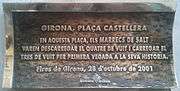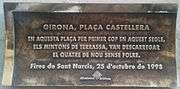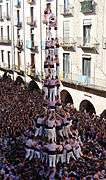 The Performance of Sant Narcís (or Diada de Sant Narcís in Catalan) is an annual performance of human towers made by castellers in Plaça del Vi, Girona. It is part of the acts of the main festivities of the city of Girona, dedicated to Saint Narcissus, patron of the city. Sant Narcís has seen som milestones by Minyons de Terrassa which in 1998 completed the first 4 in 9 with single base of the 20th century and their first pillar of 7 with double base,[1] in 2008 their first pillar of 8 with triple base[2] and in 2014 the 3 in 10 with triple base.[3]