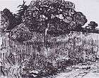 - In the Orchard, aka Gardener near a Gnarled Apple Tree, The Hague: July - (middle of month), 1883, Pen transferred to lithograph, Private Collection
