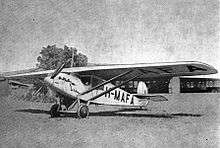 It was a high wing monoplane, with an aerodynamically thick (thickess/chord ratio 14%) Joukowski-Göttingen "tadpole shaped" airfoil over the whole span. The two piece, 3-ply covered wing was built around twin spruce flanged box spars with 3-ply webs. In plan it had constant chord and was unswept; the wingtips were angled and the short ailerons tapered slightly outboard. Each wing was braced to the fuselage with a parallel pair of airfoil section struts from the wing spars to the lower fuselage longerons.[2][3]