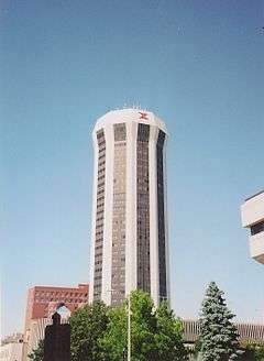 The Wyndham Springfield City Centre is a skyscraper hotel, formerly known as the Hilton Springfield. It is the tallest skyscraper in Springfield, Illinois. It was the tallest Hilton Hotel in the state of Illinois as well. The lower 15 floors are accessed by glass elevators with city views, white the upper 15 floors are accessed by ordinary interior elevators. The only exceptions to this system are that all elevators serve the basement (C), lobby/ground floor (M), 29th floor, and 30th floor. The building's lobby has a small waterfall and garden feature similar to the Westin Peachtree in Atlanta, GA, but on a smaller scale. Floor 30 has multiple panoramic, high-end restaurants and bars. It has a parking garage owned by the City of Springfield, connected to the tower by an underground concourse and a skybridge. It has the unique distinction of being one of only 2 chain hotels in downtown Springfield, the other being a Hilton DoubleTree, a rare amount of hotels in a city center for a city of its size. The hotel converted from Hilton to Wyndham on January 1, 2016.