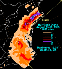 - 1 2 3 David M. Roth (2009-07-29). Hurricane Diane – August 15–19, 1955 (Report). Hydrometeorological Prediction Center. Retrieved 2013-08-03.