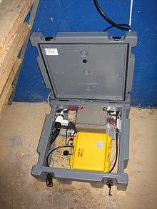 The instruments used in the seismic array are CUSP-3Clp accelerometers manufactured by Canterbury Seismic Instruments Ltd. based in New Zealand. The instruments record three components of ground motion, i.e. one vertical and two horizontal components, over a high dynamic range.[2] The instruments are connected to a GPS clock, ensuring a uniform time over the network. The instruments communicate via a wireless permanent GPRS connection. This enables remote configuration of individual units and near real-time alerts and data uploading. An important feature that has been developed during the establishment of the array is a common triggering scheme. This feature was designed in collaboration with the manufacturers of the units. In the event of two or more units receiving an earthquake trigger, the common triggering feature activates the entire array to start recording. This scheme ensures complete data coverage and greatly reduces the need to filter out noise and manmade disturbances.[2]