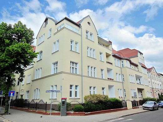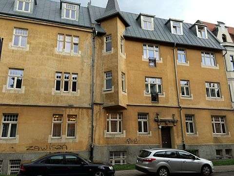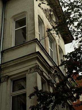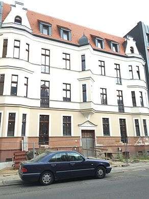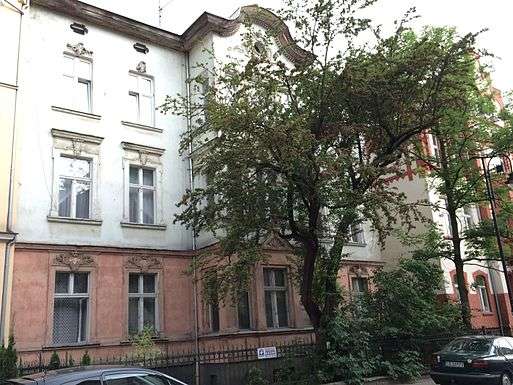 Initial address was Roonstraße 2: the tenement was the property of two merchants, Albert Jahnte and Oskar Bandelow[21] until the end of World War I. The former had a shop in Elisabeth straße.[22] The latter had two selling points for cigars in Bromberg.[23] In 2013, the building was put on sale.[24] It undergoes a thorough restoration through 2016.