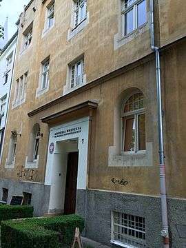 Initial address was Braesicke straße 5: the tenement was owned by the municipality, under the name "City apartment association" (German: Wohnungsverein Gehörig).[25] After the restoration of Poland in 1920, it changed to its Polish equivalent structure, Polish: Towarzystwo mieszkaniowe. In 1983, it was purchased to the benefit of Bydgoszcz Academy of Music Feliks Nowowiejski to house music school departments and lodgings for students. Today, it is part of the network of Bydgoszcz Academy of Music teaching buildings, all located downtown. The tenement also includes: