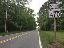 Maryland Route 470 (MD 470) is a state highway in the U.S. state of Maryland. Known as Oakley Road, the state highway runs north 3.75 miles (6.04 km) between intersections with MD 242 in Avenue and Dynard. MD 470 loops through Oakley in western St. Mary's County. The state highway was constructed in the early 1930s.
