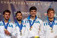 2013 World team champion Italy: from left to right, Andrea Baldini, Giorgio Avola, Andrea Cassarà and Valerio Aspromonte