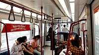 During two car operations, passengers cannot walk-through the other carriage as there is no gangway in between. The only way is to alight from one car and board the other.
