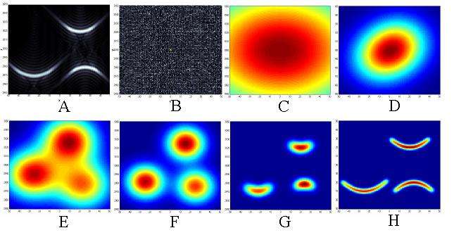 Finding patterns below noise can be an exceedingly complex problem. If an exact pattern shape is not known and depends on unknown parameters, these parameters should be found by fitting the pattern model to the data. However, when the locations and orientations of patterns are not known, it is not clear which subset of the data points should be selected for fitting. A standard approach for solving this kind of problem is multiple hypothesis testing (Singer et al. 1974). Since all combinations of subsets and models are exhaustively searched, this method faces the problem of combinatorial complexity. In the current example, noisy ‘smile’ and ‘frown’ patterns are sought. They are shown in Fig.1a without noise, and in Fig.1b with the noise, as actually measured. The true number of patterns is 3, which is not known. Therefore, at least 4 patterns should be fit to the data, to decide that 3 patterns fit best. The image size in this example is 100x100 = 10,000 points. If one attempts to fit 4 models to all subsets of 10,000 data points, computation of complexity, MN ~ 106000. An alternative computation by searching through the parameter space, yields lower complexity: each pattern is characterized by a 3-parameter parabolic shape. Fitting 4x3=12 parameters to 100x100 grid by a brute-force testing would take about 1032 to 1040 operations, still a prohibitive computational complexity. To apply NMF and dynamic logic to this problem one needs to develop parametric adaptive models of expected patterns. The models and conditional partial similarities for this case are described in details in:[10] a uniform model for noise, Gaussian blobs for highly-fuzzy, poorly resolved patterns, and parabolic models for ‘smiles’ and ‘frowns’. The number of computer operations in this example was about 1010. Thus, a problem that was not solvable due to combinatorial complexity becomes solvable using dynamic logic.