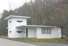 The three Oak Ridge gatehouses, also known as "checking stations", "guard houses", or "guard shacks", are security checkpoints in Oak Ridge, Tennessee, built c. 1948-1949 to control access to the Atomic Energy Commission (AEC) production and research facilities in Oak Ridge.[1] These are individually listed on the U.S. National Register of Historic Places as Bear Creek Road Checking Station, Bethel Valley Road Checking Station and Oak Ridge Turnpike Checking Station.