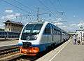 The RA-2 Multiple Unit (Cyrillic:РА2) is a Russian diesel multiple unit (rail bus), type 2. The RA-2 is produced by Metrovagonmash and is designed for passenger transportation on non-electrified railway lines with high traffic, as well as suburban and inter-regional communication. They can be operated as a part of only two head end cars, and with one or two trailing cars. The head / end cars have one exit from the cab for high platforms, and one in the centre of the car high and low platforms.