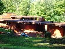 The Robert H. Sunday House is located in Marshalltown, Iowa, United States. It was designed by Frank Lloyd Wright in the Usonian style, and was listed on the National Register of Historic Places in 1988. Initially the Sunday's choose the Usonian Automatic, a natural concrete block model, for their home. When it provided unworkable, Wright sent the plans for this house. In style and materials it is very similar to the 1953 Usonian Exhibition House.[2] It was the sixth of seven houses designed by Wright and built in this style in Iowa. Sunday, who owned Marshall Lumber in Marshalltown, acted as his own general contractor. In fact, he and his wife did much of the work themselves. It is also believed to be last of this style built in brick.[2] John H. Howe, a Wright assistant who supervised the initial construction, designed an addition to this house in 1970 that conforms seamlessly with the original. It includes the family room, family room terrace, and the dining room. The original house followed an "L" shaped plan, and with the addition it is now a "T" shaped plan. Howe had previously designed (1964) the building for Sunday's business.
