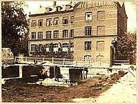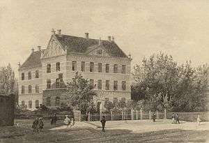 The school was founded by Hans Schneekloth on 2 May 1854 as "Realskolen for Frederiksberg og Vesterbro". It was initially based on Vesterbrogade but a new, purpose-built school building on Værnedamsvej (No. 13B) was inaugurated in 1856. It was soon expanded with a grammar school whose first students graduated in 1863. The name of the school was changed to "Schneekloths Latin- og Realskole" in 1882. It moved to a new building away from the street on the same lot (Mo. 13A) in 1885.[1] Its old building (No. 13B) was purchased by Aksel Mikkelsen and turned into a teacher training college under the name Dansk Sløjdlærerskole in 1886.[2]