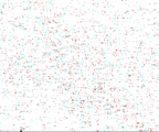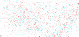 The movement of stars between apex and antapex. To view this picture you need 3D glasses (red-green or red-blue).