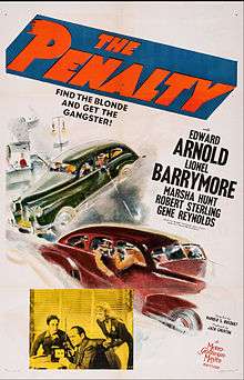 The Penalty is a 1941 American crime film directed by Harold S. Bucquet and written by Harry Ruskin and John C. Higgins. The film stars Edward Arnold, Lionel Barrymore, Marsha Hunt, Robert Sterling, Gene Reynolds and Emma Dunn.[1][2] The film was released on March 14, 1941, by Metro-Goldwyn-Mayer.