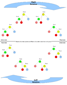 - AVL tree, red-black tree, and splay tree, kinds of binary search tree data structures that use rotations to maintain balance.