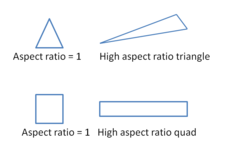 It is the ratio of longest to the shortest side in a cell. Ideally it should be equal to 1 to ensure best results. For multidimensional flow, it should be near to one. Also local variations in cell size should be minimal, i.e. adjacent cell sizes should not vary by more than 20%. Having a large aspect ratio can result in an interpolation error of unacceptable magnitude.