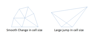 The change in size should also be smooth. There should not be sudden jumps in the size of the cell because this may cause erroneous results at nearby nodes.