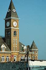 The Washington County Courthouse is a courthouse in Fayetteville, Arkansas, United States, the county seat of Washington County, built in 1905. It was listed on the National Register of Historic Places in 1972. The courthouse is the fifth building to serve Washington County, with the prior buildings located near the Old Post Office on the Historic Square.[2] The building is one of the prominent historic buildings that compose the Fayetteville skyline, in addition to Old Main.