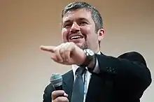 Ákos Hadházy (born 4 March 1974)[1] is a Hungarian veterinarian and politician. He was co-President of the Politics Can Be Different (Lehet Más a Politika; LMP) party from 2016 to 2018, and has been a member of the National Assembly (MP) from the party's National List since 2016.[2]