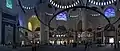 Çamlıca Mosque features a museum, underground parking space, an art gallery, library, conference hall, and a childcare.[4] The art gallery is of 3,500 square metres and the library is that of 3,000 square metres in space.[2] The conference hall is able to seat up to 1,071 people and the mosque features eight art workshops as well as an indoor parking lot to hold up to 3,500 vehicles.[2] The interior of Çamlıca Mosque was designed with a more minimalist architectural approach.[11] The intention of the two female designers was to make people feel more spiritual within the space, they stated that the use of “light, colour, glass, ornamentation and calligraphy” was done so with this in mind.[11]