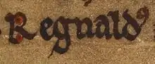 - Since the 1990s, academics have accorded Óláfr various personal names in English secondary sources: Amhlaibh,[2] Amhlaoibh,[3] Amlaíb,[4] Amlaim,[5] Olaf,[6] Óláf,[7] Olafr,[8] Ólafr,[9] Óláfr,[10] and Olav.[11] Likewise, academics have accorded Óláfr various patronyms in English secondary sources: Amhlaíbh Derg mac Gofhraidh,[12] Amlaíb mac Gofraid Méránaich,[13] Amlaíb mac Gofraid,[14] Olaf Godredsson,[15] Olaf Gudrodson,[16] Óláf Guðrøðsson,[17] Óláfr bitlingr Guðrøðsson,[18] Olafr Godredsson,[8] Óláfr Godredsson,[19] Óláfr Gothfrithsson,[20] Óláfr Guðrǫðarson,[21] Óláfr Guðröðarson,[22] Ólafr Guðrøðarson,[23] Óláfr Guðrøðarson,[24] Óláfr Guðrøðarsson,[25] Óláfr Guðrøðson,[26] Óláfr Guthfrithsson.[13] and Olav Gudrødsson Bitling.[11] Similarly, academics had accorded Óláfr various epithets in English secondary sources: Amhlaíbh Derg mac Gofhraidh,[12] Amlaíb 'the Red',[27] Amlaíb Derg,[28] Olaf Bitling,[29] Olaf Kleining,[30] Olaf the Diminutive,[31] Olaf the Red,[32] Olaf "the Red",[33] Olaf Titbit,[13] Óláfr Bitling,[13] Óláfr bitlingr Guðrøðsson,[18] Óláfr Bitlingr,[34] Óláfr klíningr Guðrøðarson,[35] Ólafr Suðreyjakonungr,[36] Óláfr Titbit,[37] and Olav Gudrødsson Bitling.[11] Óláfr is accorded several epithets in important mediaeval primary sources. The thirteenth-century Orkneyinga saga accords him the Old Norse byname bitlingr, which can translate to "bit", "the diminutive", "little-bit", "morsel", "tit-bit".[38] The Old Norse byname klíningr, which can translate to "Buttered Cake", "buttered bread", is accorded to Óláfr by Hákonar saga herðibreiðs within the thirteenth-century saga-compilation Heimskringla.[39] If these two epithets refer to Óláfr's stature, in the sense of "the small one" or "the little one", it is possible that they either refer in a literal sense to the small stature, or in an ironical sense to great height.[40] Another epithet, "the Red", is accorded to Óláfr by the seventeenth-century Sleat History.[41] This name contrasts "the black", the translation of an epithet accorded to his like-named grandson, Óláfr Guðrøðarson, King of the Isles.[42]