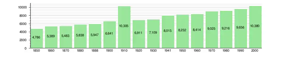 Raron has a population (as of December 2019) of 11,000.[1] Most of the population (as of 2000) speaks German (9,979 or 96.1%) as their first language, Albanian is the second most common (89 or 0.9%) and French is the third (88 or 0.8%). There are 45 people who speak Italian and 2 people who speak Romansh.[4]