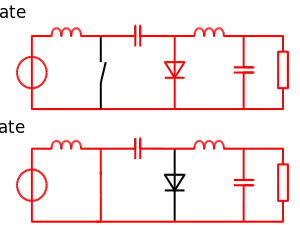 The Ćuk converter (pronounced chook; sometimes incorrectly spelled Cuk, Čuk or Cúk) is a type of buck-boost converter with zero-ripple current.[1] Ćuk converter can be seen as a combination of boost converter and buck converter, having one switching device and a mutual capacitor, to couple the energy.
