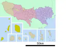 It includes the following towns and villages on the Izu Islands: