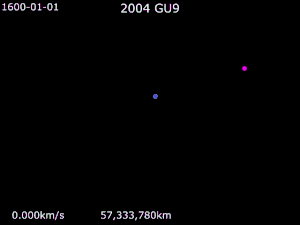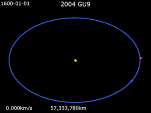 (164207) 2004 GU9 is a sub-kilometer asteroid, classified as near-Earth object and potentially hazardous asteroid of the Apollo group. It will be a quasi-satellite of Earth until around 2600.[3]