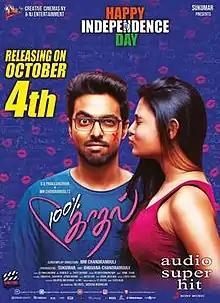 100% Kadhal (English: 100% Love) is a 2019 Indian Tamil-language romantic comedy film directed by Chandramouli and starring G. V. Prakash Kumar and Shalini Pandey in the leading roles. A remake of the Telugu film 100% Love (2011), the film began production in October 2017.[2] The film released on 4 October 2019 .[3][4]