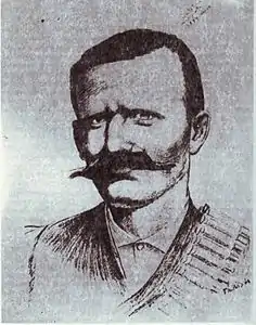 The 1896–1897 Greek Macedonian rebellion was a revolution of the Macedonians in 1896, a guerrilla movement that took place in Macedonia in order to preserve the conscience and ready-mindedness of the Greek populations, to create a rivalous awe against the Bulgarians the demarcation of the Greek territorial claims in the Ottoman area and the creation of a distraction for the events of Crete. The movement was of Macedonian character, as the regiments invading Macedonia from Thessaly consisted primarily of Macedonian chieftains and fighters, most of whom were from Northwestern Macedonia. The initial impetus was given by the Ethniki Etaireia (Greek National Company), but then several Macedonian chieftains spontaneously and without coordination were involved in the events, while in some regions of Macedonia the events took the form of massive uprisings. The main rebels of the Macedonian Revolution of 1896 were the areas of Sanjak of Monastir (Florina, Pelagonia), Sanjak of Korytsa (Kastoria), Sanjak of Servia (Grevena, Kozani), Sanjak of Salonica (Pieria, Imathia, Pella, Tikveš) and Sanjak of Serres (Nevrokop).[1][2]