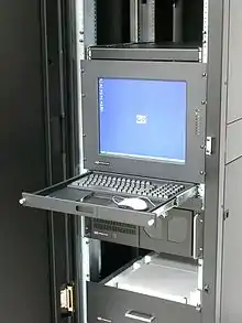 When there is a large number of computers in a single rack, it is impractical for each one to have its own separate keyboard, mouse, and monitor. Instead, a KVM switch or LOM software is used to share a single keyboard/video/mouse set amongst many different computers.