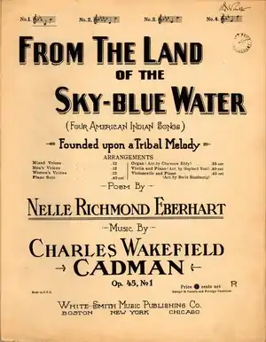 - "From the Land of the Sky-Blue Water" w. Nelle Richmond Eberhart m. Charles Wakefield Cadman