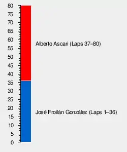 José Froilán González emerged in first place at the start of the race, ahead of Ascari in second. The Argentine remained in the lead for the first 36 laps of the race, until a slow pit stop allowed the Ferraris of Ascari and Villoresi to pass him for first and second, respectively. Ascari held the lead for the remainder of the race, and, in so doing, took his sixth consecutive World Championship race victory. González caught up with Villoresi and passed him to take second place in his only Championship race of the season. Villoresi completed the podium by taking his second consecutive third-place finish. Farina was not far behind in fourth place, while the second Maserati of Felice Bonetto took the final points position in fifth, finishing a lap down on the leaders. The remaining works Ferraris of Simon and Taruffi finished in sixth and seventh place, respectively.[1]
