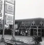 Fairgoers could also enjoy sampling sandwiches from around the world at the popular 7-Up International Sandwich Garden Pavilion which featured the innovative fiberglass Seven Up Tower.[36][37] In addition to all the 7-Up beverages one could drink, fair-goers were invited to sample varied culinary delights representing sixteen countries. While dining, visitors enjoyed live performances on four circular stages from various instrumentalists which included a five piece musical ensemble, the 7-Up Continental Band. The musical programs included popular show tunes from the Broadway stage in America, as well as musical favorites from both Europe and Latin America. The soloist John Serry Sr. appeared regularly with the orchestra to complement the international flavor of the musical program.[38][39] The dining pods featured furnishings designed by the futuristic Finnish-American architect Eero Saarinen and were enclosed by twenty-four futuristic fiberglass domes which were topped by a commanding clock tower which soared over 107 feet (33 m) above the entire pavilion.[40][41][42]
