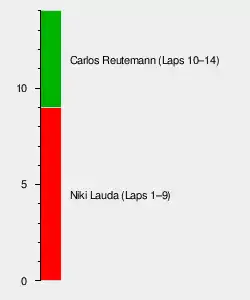 Niki Lauda 9 (1–9), Carlos Reutemann 5 (10–14).[5]