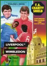 The fixture was a rematch of previous season's FA Cup Final, and Liverpool gained some small revenge for that defeat with a 2–1 win, with both of their goals coming from John Aldridge – the player whose penalty in the final three months earlier had been saved.[1] However, the man who had saved his penalty – Wimbledon's goalkeeper Dave Beasant – had gone, transferred to Newcastle United in the close season, and his place for this game was taken by Simon Tracey.