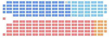 | Total seats: | 36 | 28 | 14 | 14 | 106 | 75 | 10 | 11 | 4 | 7 | 1 | 1 | 1 | 308 | ||