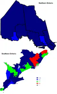 ![]() Results by Ontario electoral district | ||||||||||||||||