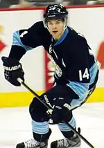 In the early morning hours on March 28 the Pittsburgh Penguins announced that they had acquired 16-year veteran and Calgary Flames captain Jarome Iginla in exchange for Ben Hanowski, Kenny Agostino and a 2013 first-round draft pick after Iginla also waived his no-trade clause to play for the Penguins.[56] That evening the Penguins went on to defeat the Winnipeg Jets 4–0 which featured Evgeni Malkin making his return to the lineup after missing nine games and goaltender Tomas Vokoun recording his 50th career shutout extending the Penguins winning streak to 14 games.[57] Jarome Iginla filled an immigration petition and was approved to join the team on March 29 in time to be added to the starting line-up against the New York Islanders.[58] The Penguins went on to defeat the Islanders extending the winning streak to 15 games and became the first team in league history to have a perfect record over a calendar month.[59] The Penguins also set a franchise record for longest shutout streak of 208:24 minutes and Vokoun setting a personal and Penguins record for an individual shutout streak with 162:42 minutes. The win came with a price after 50 seconds into his first shift, Sidney Crosby left the game after a shot from Brooks Orpik was deflected and re-directed into his mouth.[60] The next day, head coach Dan Bylsma announced that Sidney Crosby needed to have oral surgery as a result of the injury and was out indefinitely with a broken jaw.[61][62] Defenseman Paul Martin also underwent surgery on a broken bone in his hand and is projected to miss 4–6 weeks.[63]