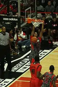 Karl-Anthony Towns was the first commitment for the class when verbally committed on December 4, 2012.[45] He was named Gatorade National Player of the Year in 2014.[46] He played for the Dominican Republic National Team in 2012 and 2013 which were coached by John Calipari and Kentucky assistant, Orlando Antigua.[47] He was ranked as No. 6 overall by ESPN and No. 11 by Rivals and Scout.