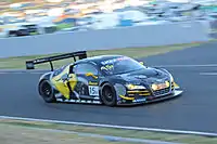 The highlight of the race came in the closing laps. The Nissan had been racing conservatively all day, just staying on the lead lap and in touch with the leaders. Matt Bell led the field in one of the M-Sport Bentleys, ahead of Laurens Vanthoor in the Phoenix Racing Audi with Chiyo in third. Stefan Mucke and Dean Canto were also on the lead lap. There were a few late safety car periods, with the last leaving two laps of racing to the finish. Once racing began Chiyo took second at the first corner before taking the lead going up Mountain Straight. As Chiyo built a gap over his rivals, a battle developed for second place, with Bell ahead of Vanthoor and Mucke. Mucke passed Vanthoor for third going down Conrod Straight on the final lap before attempting to pass Bell at the final corner. Mucke made contact with Bell, sending him into a slide, while Vanthoor drove around the outside of both cars to take second place behind Chiyo. Mucke took third while Bell dropped to fourth.