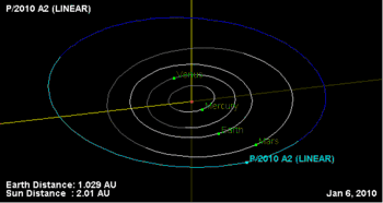 - "JPL Small-Body Database Browser: P/2010 A2 (LINEAR)" (last observation: 2012-10-14; arc: 2.83 years). Retrieved 3 February 2010.
